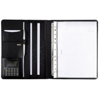 Ringbuchmappe A4 CREMONA II Ringmechanik, Block, drei A4 Einschubfächer, Visitenkartenfach, A4 Einschubfach außen, Klarsichtfensterfach Farbe: schwarz Material: Nappaleder Maße: ca. 31,5 x 26 x 2 cm