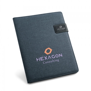 Artikel-Nr: PST92067-104Schreibmappe A4 aus Leinenimitation und PU mit Magnetverschluss, einem Smartphone- und Kartenfach. Die Mappe hat ein veredelbares Metallplättchen mit gummierter Oberfläche und ein Notizblock mit 40 linierten Seiten (60 g / m²). Kugelschreiber und Zubehör nicht enthalten. 233 x 310 x 18 mm | Plättchen: 50 x 30 mm