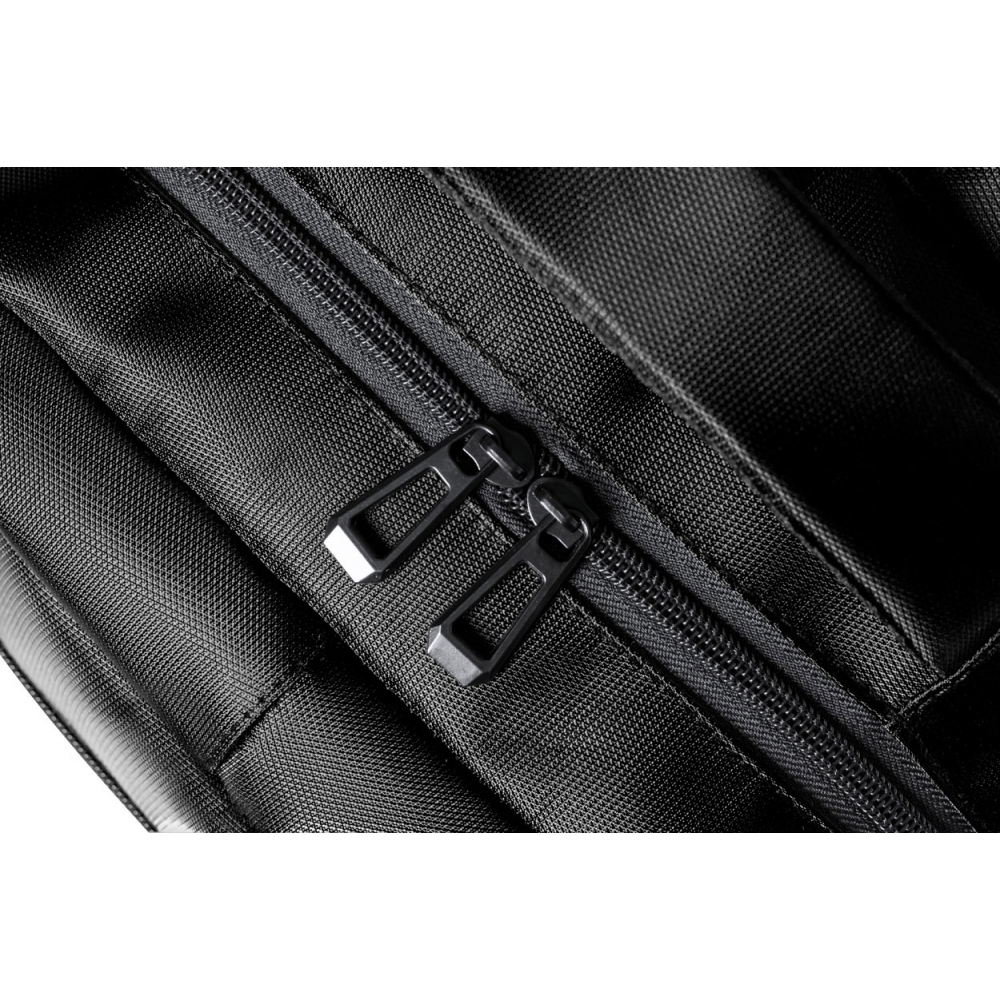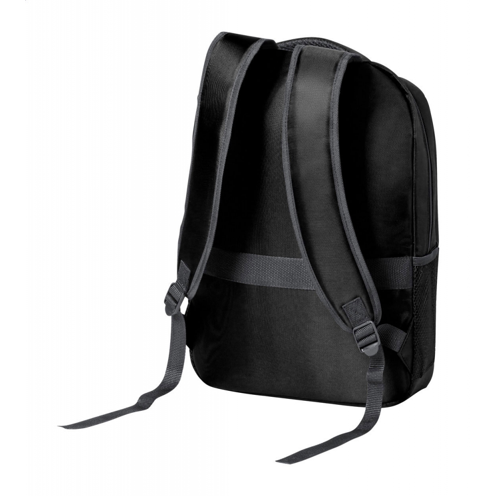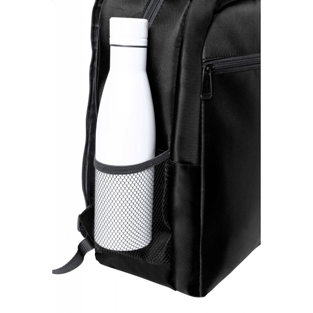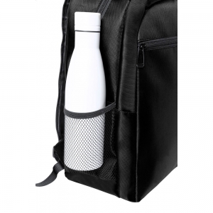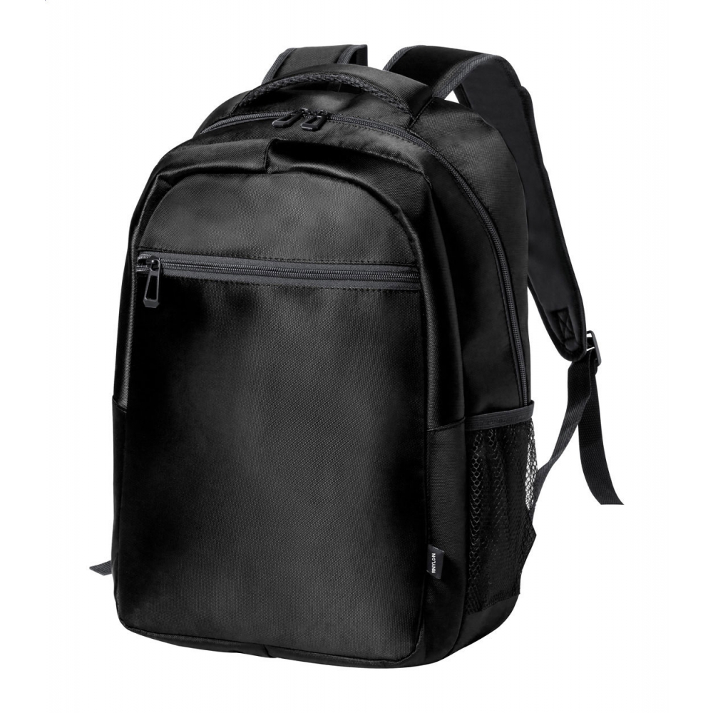 Artikel-Nr: AND722774-10Rucksack aus RNYLON mit Reißverschlussfächern, Netz-Seitenfächern, gepolstertem Laptopfach (15"), Trolleygurt, gepolstertem Rücken und Schultergurten. Material: 420D Recyceltes Nylon mit RNYLON-Label.