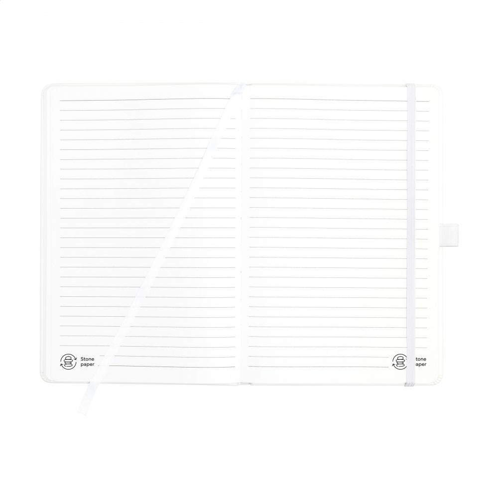 Artikel-Nr: CLP207110WoW! Dieses Notizbuch im Format DIN A5 ist aus baumfreiem Papier hergestellt. Es umfasst ca. 64 Blatt/128 Seiten (170 g / m²) cremefarbenes, liniertes Papier aus Naturstein: 80% Kalziumkarbonat und 20% Harz (HDPE), um den Stein zu binden. Der Einband ist ebenfalls aus 950-Gramm-Steinpapier mit einer Thermo-PU-Beschichtung gefertigt. Das Notizbuch ist mit einer praktischen Stiftschlaufe, einem Gummiband zum Verschließen und einem Lesebändchen ausgestattet. Steinpapier ist eine Alternative zu herkömmlichem Papier, da für seine Herstellung weit weniger Rohstoffe verwendet werden: keine Bäume, kein Wasser, keine Bleichmittel und keine Chemikalien. Das Besondere an diesem Produkt: Neben dem schönen, glatten Papier ist es auch unendlich recycelbar. Darüber hinaus ist das Papier antibakteriell, wasserfest, reißfest und schmutzabweisend.