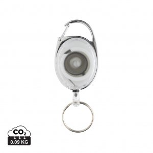 Artikel-Nr: XND1916503Roller-Clip Schlüsselanhänger aus RCS recyceltem ABS und Zinklegierung hergestellt. Idealer Artikel für Büro, Messe oder sogar beim Skifahren. Mit 60cm Kordel zur Befestigung des Ausweises. Mit Karabinerhaken zur Befestigung an Tasche oder Kleidung. Gesamter recycelter Inhalt: 34% basierend auf dem Gesamtgewicht des Artikels. Die RCS-Zertifizierung gewährleistet eine vollständig zertifizierte Lieferkette der recycelten Materialien. Verpackt in Papiertüte