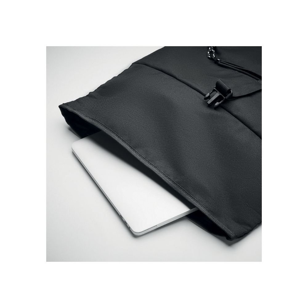 Artikel-Nr: OCBMO6998-03Rucksack mit Rollverschluss aus 600D RPET Polyester. Gepolsterter Rücken und verstärkter Boden. Fronttasche mit Reißverschluss. Futter 210D RPET.