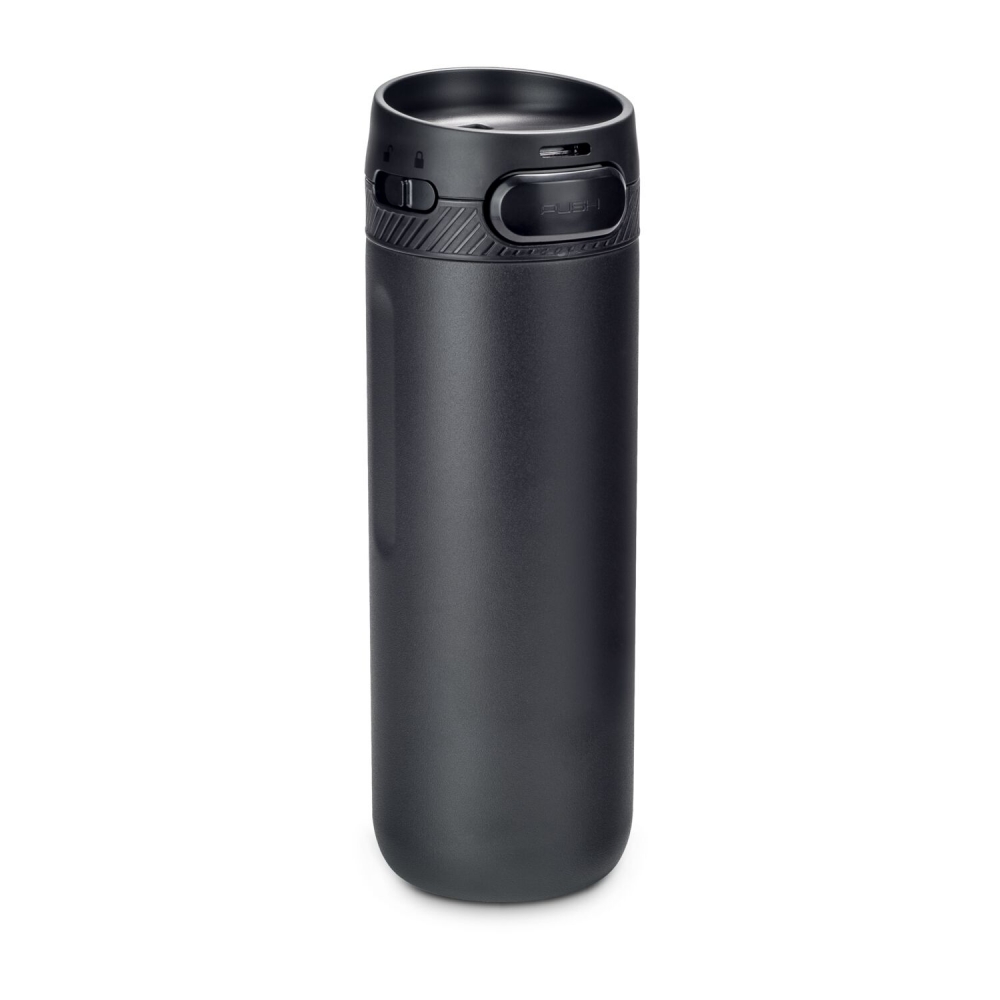 Artikel-Nr: ROPRX2346Moderner Thermobecher - schlichtes Design, einfaches Trinken durch Einhand-Druckknopfverschluss, praktische Verriegelung für einen sicheren Transport, leicht zu reinigen dank entnehmbarem Innenteil im Deckel, hergestellt zu 70 % aus recyceltem Edelstahl, 600 ml (Edelstahl - pulverbeschichtet, Kunststoff, Gummi)