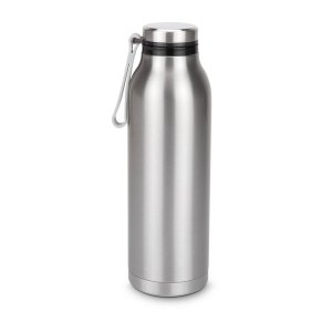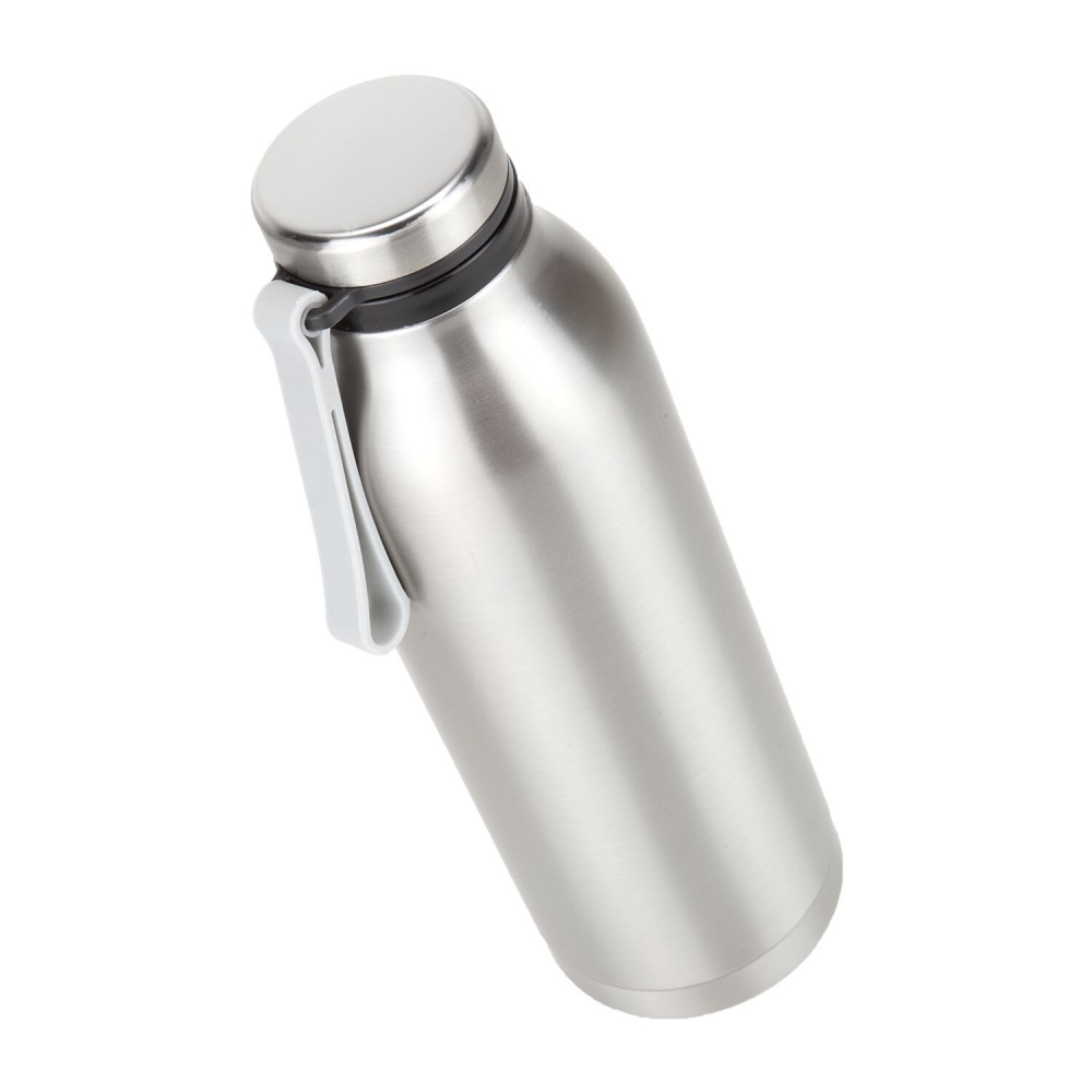 Artikel-Nr: ROPRX2256Handliche Thermoflasche in modernem Retrolook, auslaufsicher, leicht und stabil, zuverlässiger Begleiter für unterwegs, mit Drehverschluss und praktischem Trageriemen, doppelwandig für beste Isolation, 600 ml (Edelstahl - seidenmatt gebürstet, Kunststoff)