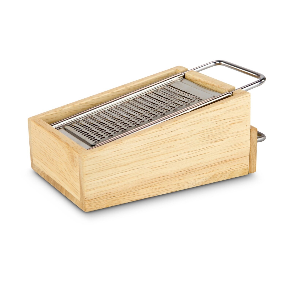 Artikel-Nr: ROPRX2120Klassische Käsereibe aus Holz, integrierte Schublade zum Auffangen und Servieren des geriebenen Käses, hochwertig und stabil, scharfe, herausnehmbare Edelstahlreibe mit handlichem Griff, einfache Reinigung (Holz, Edelstahl)