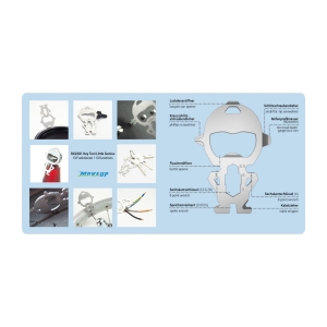 Artikel-Nr: ROPRX2281Die praktischen ROMINOX© Multitools gibt es jetzt auch als Mini-Helfer für den Schlüsselbund! Klein, leicht und doch vielseitig überzeugen die Mini-Werkzeuge im Alltag. Robuster Werkzeugstahl, inkl. Funktionsbeschreibung und Standard-Kartonverpackung, kundenindividuelle Verpackung ab 100 Stück möglich (Werkzeugstahl). In zwei Designs verfügbar. Key Tool mit 13 Funktionen: 5 Sechskantschlüssel, 2 Speichenvierkant, 1 Schlitzschraubendreher, 1 Kreuzschlitzschraubendreher, 1 Kabelzieher, 1 Flaschenöffner, 1 Reifenprofilmesser (1,6 mm), 1 Lackdosenöffner - ab 3.000 Stück auch als Sonderproduktion mit individueller Key Tool Form möglich. Sprechen Sie uns an!