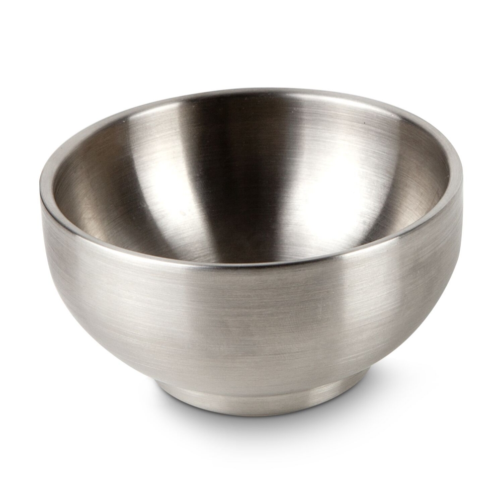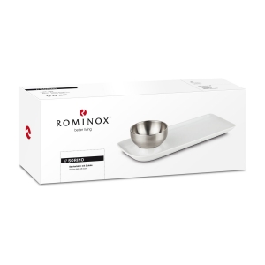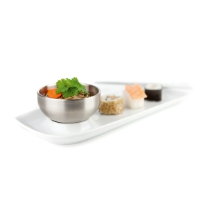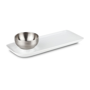 Artikel-Nr: ROPRX2219Funktional gestalteter Servierteller mit integrierter Schale (ca. Ø 9,5 x 4,5 cm) aus Edelstahl für Beilagen, Suppen, Soßen oder Dips - praktisch und unkonventionell (Porzellan, Edelstahl)