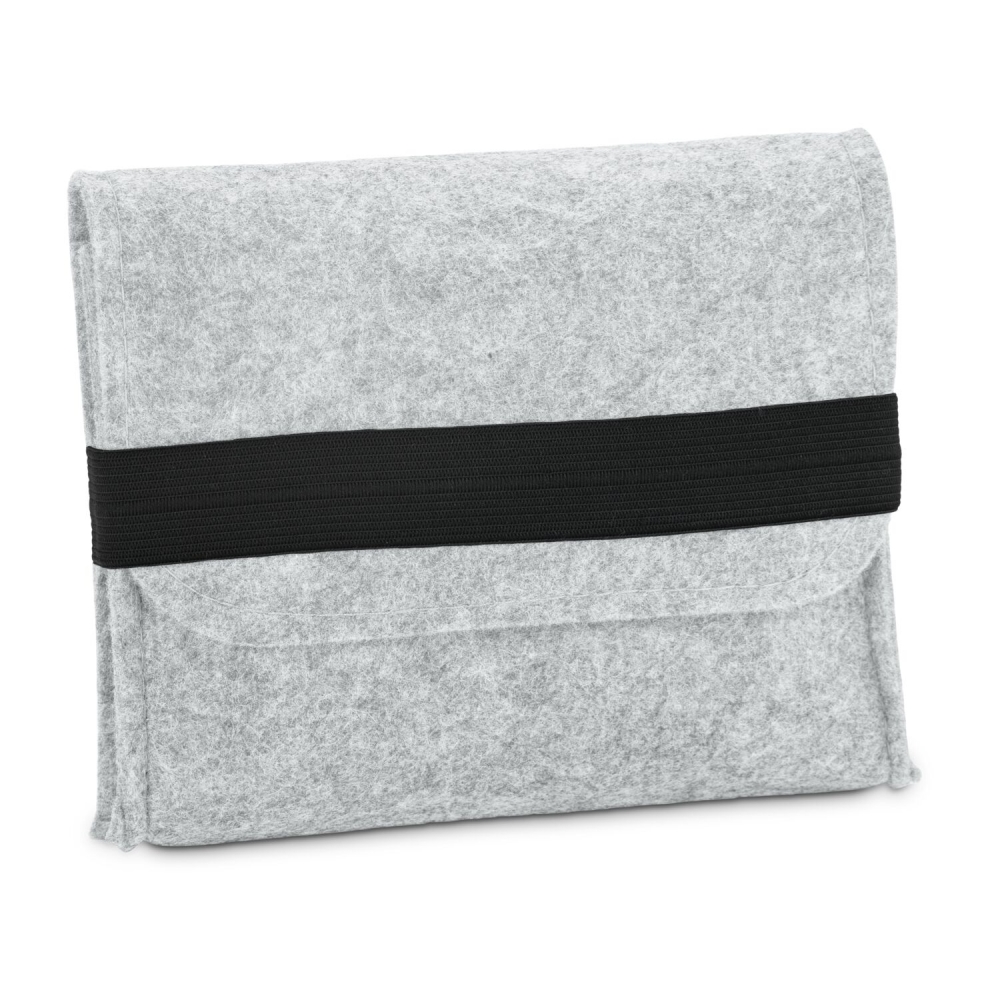 Artikel-Nr: ROPRX2340Hochwertige Filztasche als moderner Organizer mit Gummiverschluss, stilvoll meliertes Hellgrau, handliches, praktisches Design, ideal zur Aufbewahrung von Kabeln, externen Festplatten, USB-Sticks oder anderen Kleinigkeiten (veganer Filz aus 100 % recyceltem PET, zertifiziert nach Global Recycling Standard)