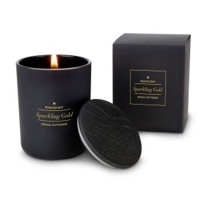 Artikel-Nr: ROP4RS16-09Eine Flasche Champagner ist das Synonym für Luxus. Unsere Aromakerze Sparkling Gold (ca. 110 g) verbreitet einen dezenten Duft der an diesen prickelnden Genuss erinnert und ist daher die perfekte Kerze für besondere Momente. Ihr süßlicher frischer Duft versprüht einen ganz besonderen Charme, dem keiner widerstehen kann. Die luxuriöse Duftkerze in ihrem eleganten schwarz-matten Glas mit Holzdeckel und feinem Schleifenband ist ein echter Hingucker. Der passende stilvolle schwarze Geschenkkarton mit Goldfolienprägung rundet unsere Aromakerze Sparkling Gold als edles Präsent ab. Brenndauer ca. 20 Stunden.