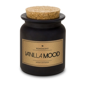 Artikel-Nr: ROP4RS21-09Unsere exklusive Aromakerze Vanilla Mood (ca. 230 g) verbreitet einen zart-lieblichen Duft nach Vanille, der alle Sinne umschmeichelt. Der breite Holzdocht verbreitet eine ganz besonders gemütliche Atmosphäre, denn er knistert leise und das flackernde Licht erinnert an ein gemütliches Lagerfeuer. Die schicke Duftkerze kommt in einem eleganten schwarz-matten Glas und wird mit einem braunen und einem weißen Etikett zur Auswahl geliefert. Nach Verbrauch des Wachses können auch andere Teelichter in das Glas gesetzt werden. Dazu ein praktischer Deckel aus natürlichem Kork. Der passende Kraftpapier-Geschenkkarton mit Druck rundet unsere Aromakerze Vanilla Mood als elegantes Präsent ab. Brenndauer ca. 40 Stunden.