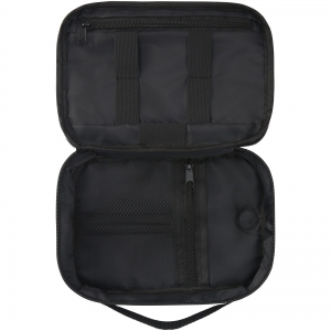 Artikel-Nr: CPO13004855Die GRS-recycelte Techniktasche Ross eignet sich ideal für Personen, die häufig unterwegs sind, und bietet Platz für Powerbanks, Ladekabel oder sonstiges elektronisches Zubehör. Ausgestattet mit mehreren Taschen, elastischen Loops und einer Kabeldurchführung, die es ermöglicht, eine Powerbank in der Tasche aufzubewahren und gleichzeitig ein Handy aufzuladen. Die Tasche verfügt zudem über einen Karabinerhaken aus Kunststoff zur Befestigung an einer weiteren Tasche. Kapazität: 1 Liter.