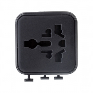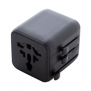Artikel-Nr: AND864057-10Ultrakompakter, universeller Reiseadapter für weltweiten Einsatz aus recyceltem PC-Kunststoff, mit integrierten Steckdosen für USA, Europa, Großbritannien und Australien.