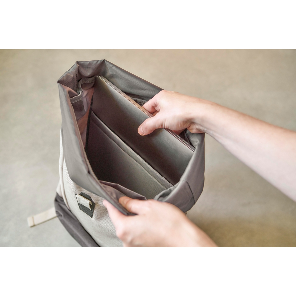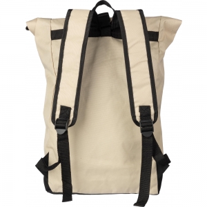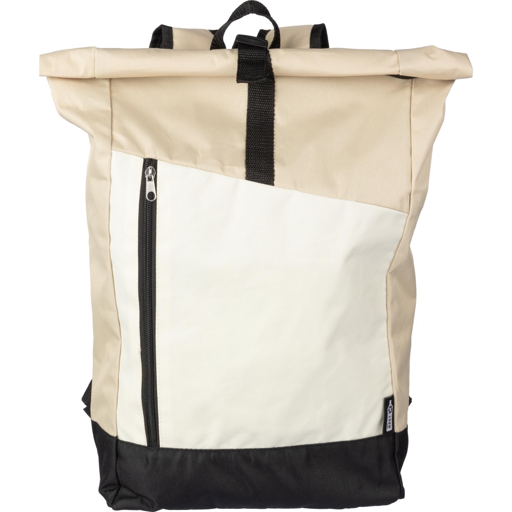 Artikel-Nr: GIV1096838357Rucksack aus rPET (600D) mit Rolltop und einer großen Reißverschlusstasche auf der Oberseite sowie einer großen Reißverschlusstasche auf der Vorderseite. Der Rucksack hat verstellbare Schultergurte und eine Kunststoffschnalle zum Verschließen des Rolltops.