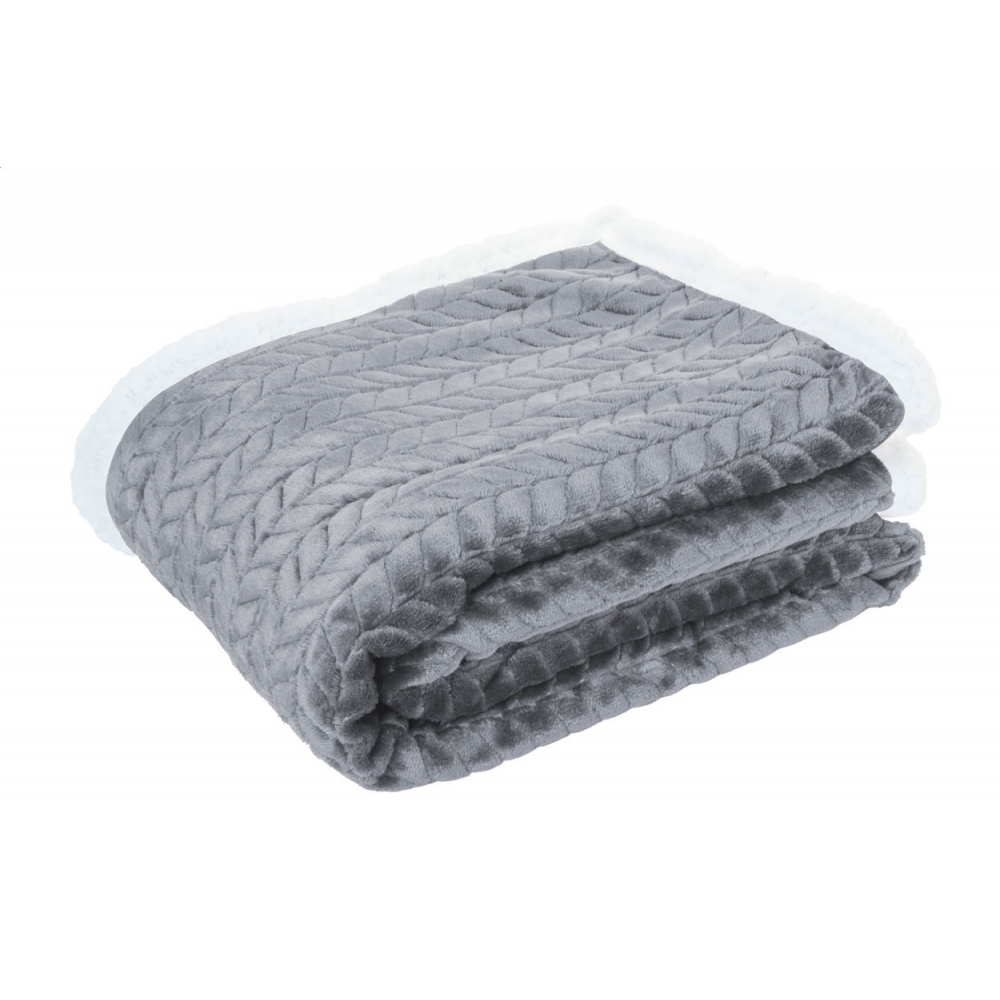 Artikel-Nr: AND861009-77Zweilagige RPET-Decke mit Jacquardmuster. Mit 240 g / m² RPET-Flanellfleece und wendbarem 210 g / m² RPET-Sherpa-Fleecefutter. Eingewickelt mit einem Band und bedruckbarer Papierkarte.