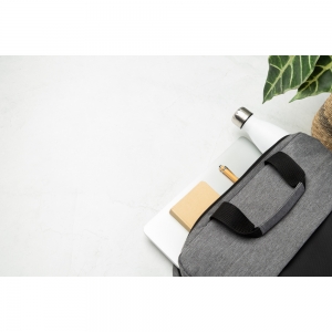 Artikel-Nr: AND800584Wasserdichte, gepolsterte RPET-Dokumenten- und Laptoptasche mit Reißverschluss-Hauptfach, Reißverschluss-Vortasche und verstellbarem Schultergurt. Für Laptops bis zu 15" geeignet. Material: PU-beschichtetes 600D-RPET-Polyester. Mit RPET-Label.