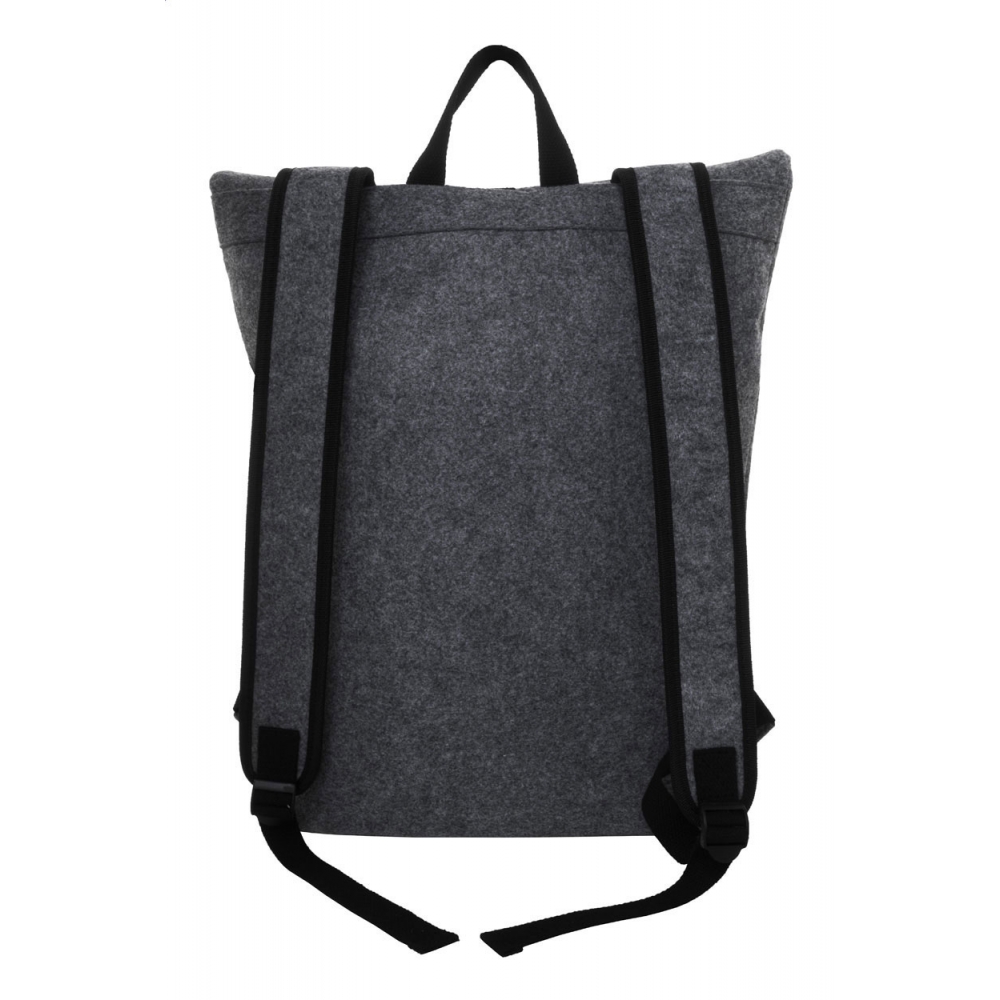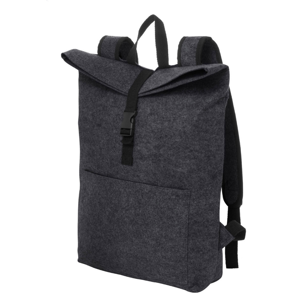 Artikel-Nr: AND800575-80Rolltop-Rucksack aus RPET Filz mit Schnallenverschluss am Hauptfach, Reißverschluss-Fronttasche, Laptopfach (15") und gepolsterten Schultergurten. Mit RPET-Label.