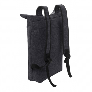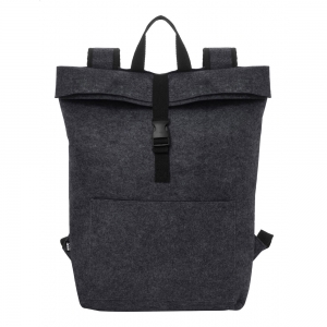 Artikel-Nr: AND800575-80Rolltop-Rucksack aus RPET Filz mit Schnallenverschluss am Hauptfach, Reißverschluss-Fronttasche, Laptopfach (15") und gepolsterten Schultergurten. Mit RPET-Label.