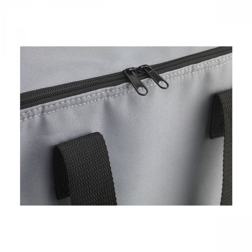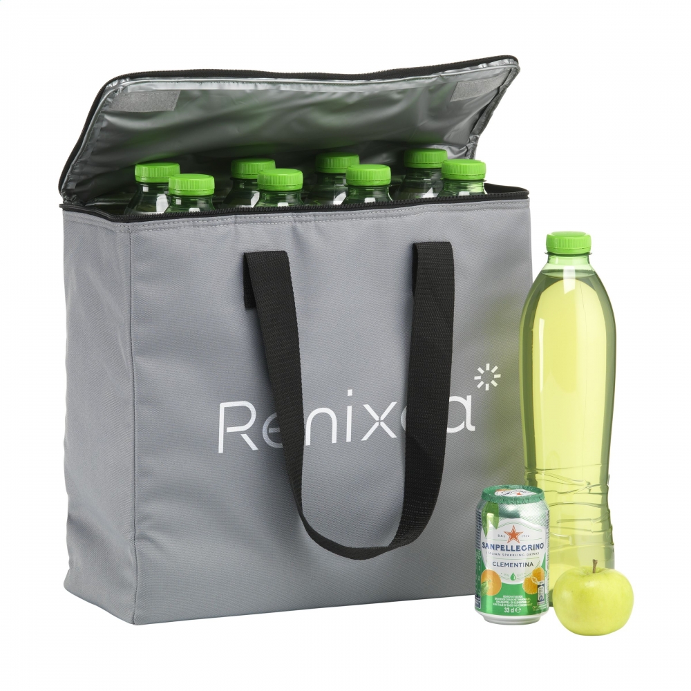 Artikel-Nr: CLP443690WoW! Große, stabile Kühltasche mit Reißverschluss und Tragegriffen. Dieses Produkt wird aus 600D-RPET-Polyester hergestellt, einem Material aus recycelten PET-Flaschen und Textilfasern. Diese Tasche bietet viel Stauraum und kann bis zu acht 1,5-Liter-Flaschen fassen. Diese Tasche kann auch zum Transportieren von Zwei-Liter-Flaschen verwendet werden. Fassungsvermögen ca. 24 Liter.