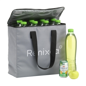 Artikel-Nr: CLP264436-003Große, stabile Kühltasche mit Reißverschluss und Tragegriffen. Dieses Produkt wird aus 600D-RPET-Polyester hergestellt, einem Material aus recycelten PET-Flaschen und Textilfasern. Diese Tasche bietet viel Stauraum und kann bis zu acht 1,5-Liter-Flaschen fassen. Diese Tasche kann auch zum Transportieren von Zwei-Liter-Flaschen verwendet werden. Fassungsvermögen ca. 24 Liter.