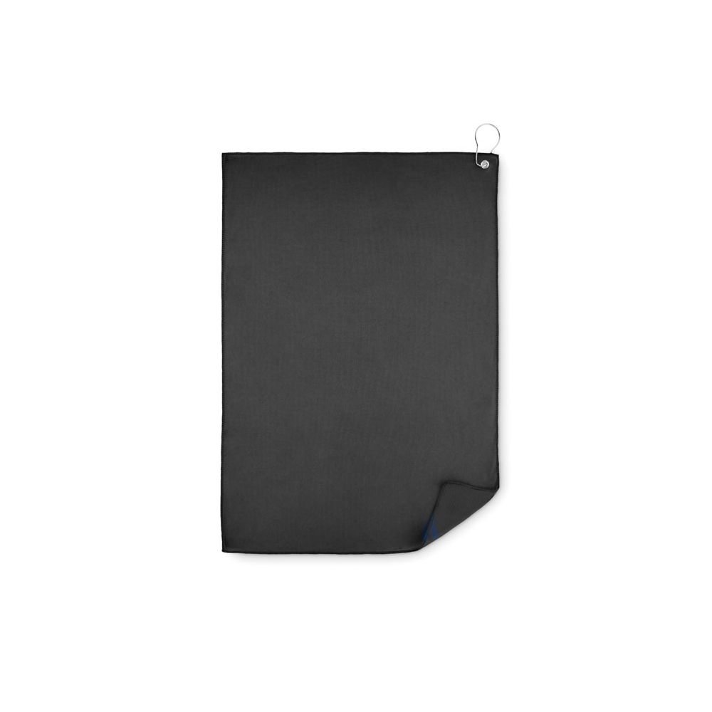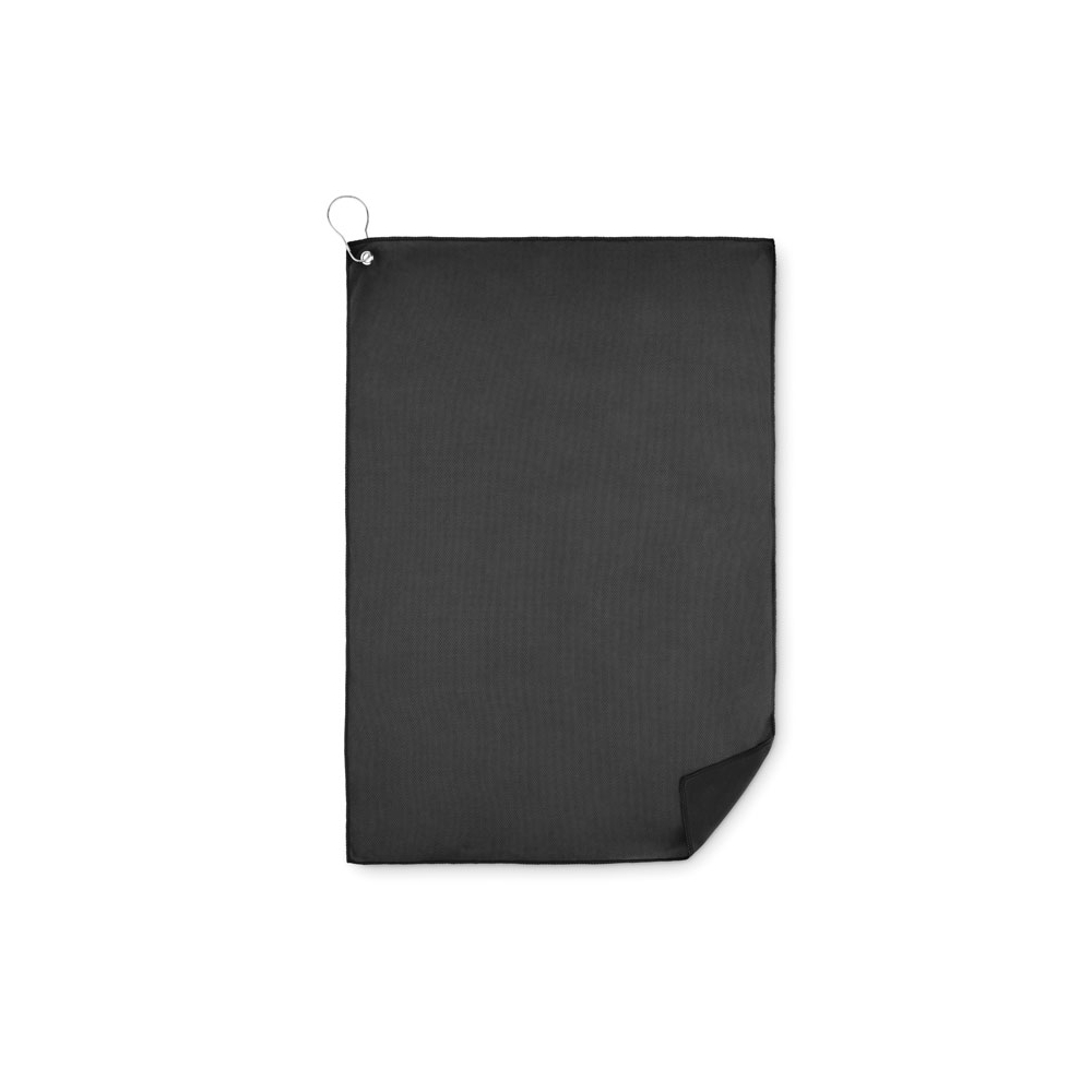 Artikel-Nr: OCBMO6526-03Golfhandtuch aus RPET-Polyester mit Öse und Haken zum Befestigen an Tasche oder Ausrüstung. Handtuchmaße: 40 x 60cm.