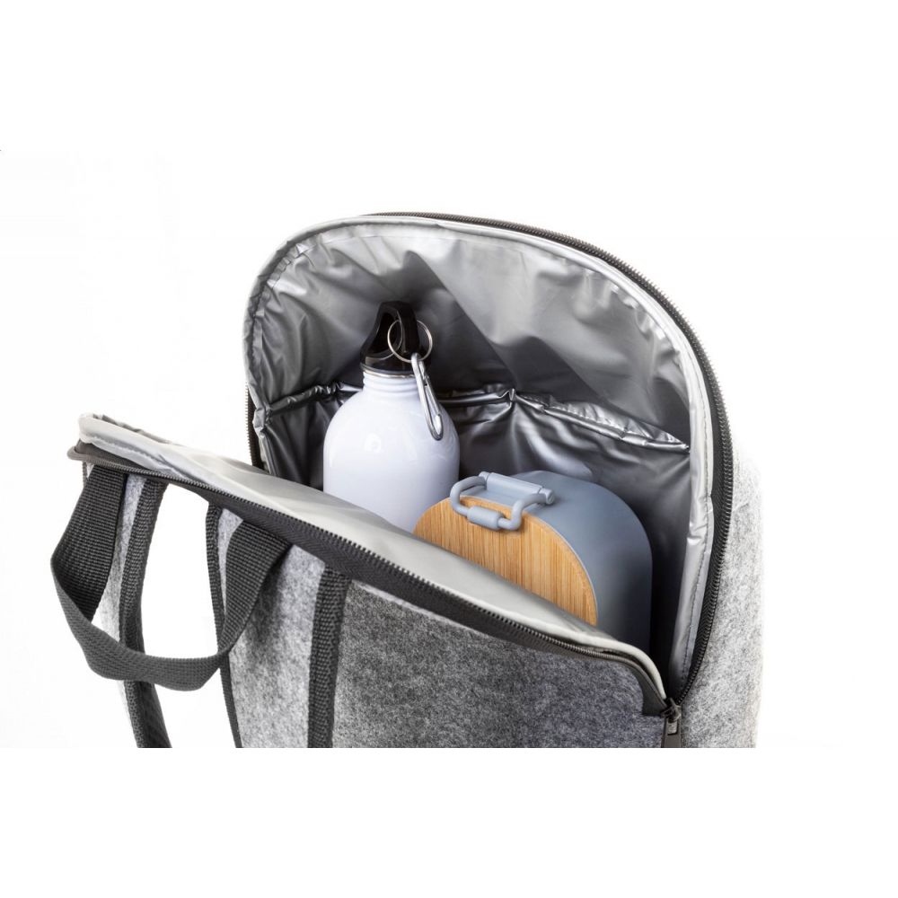 Artikel-Nr: AND808279-77Kühlrucksack aus RPET-Filz mit PEVA-Polsterung. Mit gepolsterten Schultergurten, Hauptfach mit Reißverschluss und Fronttasche. Mit RPET-Label.