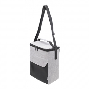 Artikel-Nr: AND808277-77Kühltasche mit Reißverschluss aus RPET mit PU-beschichteten Applikationen und PEVA-Polsterung. Mit Tragegriff, verstellbarem Schultergurt und kleiner Vordertasche. Material: 600D RPET-Polyester. Mit RPET-Label.