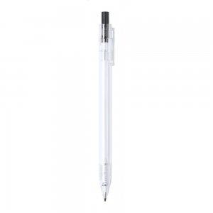 Artikel-Nr: AND722124-10Transparenter Kugelschreiber aus RPET-Kunststoff mit farbigem Drücker. Blauschreibend.