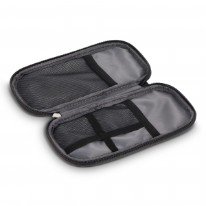Artikel-Nr: ART95326N0010PU-beschichtete rPET 210D-Organizer-Etui für technische Geräte. Mit Handschlaufe zum einfachen Tragen und vier Innentaschen (zwei große, zwei kleine) zum Ordnen von Kabeln, Ladegeräten, Powerbanks und mehr. Praktisch und kompakt, ideal für Reisen.