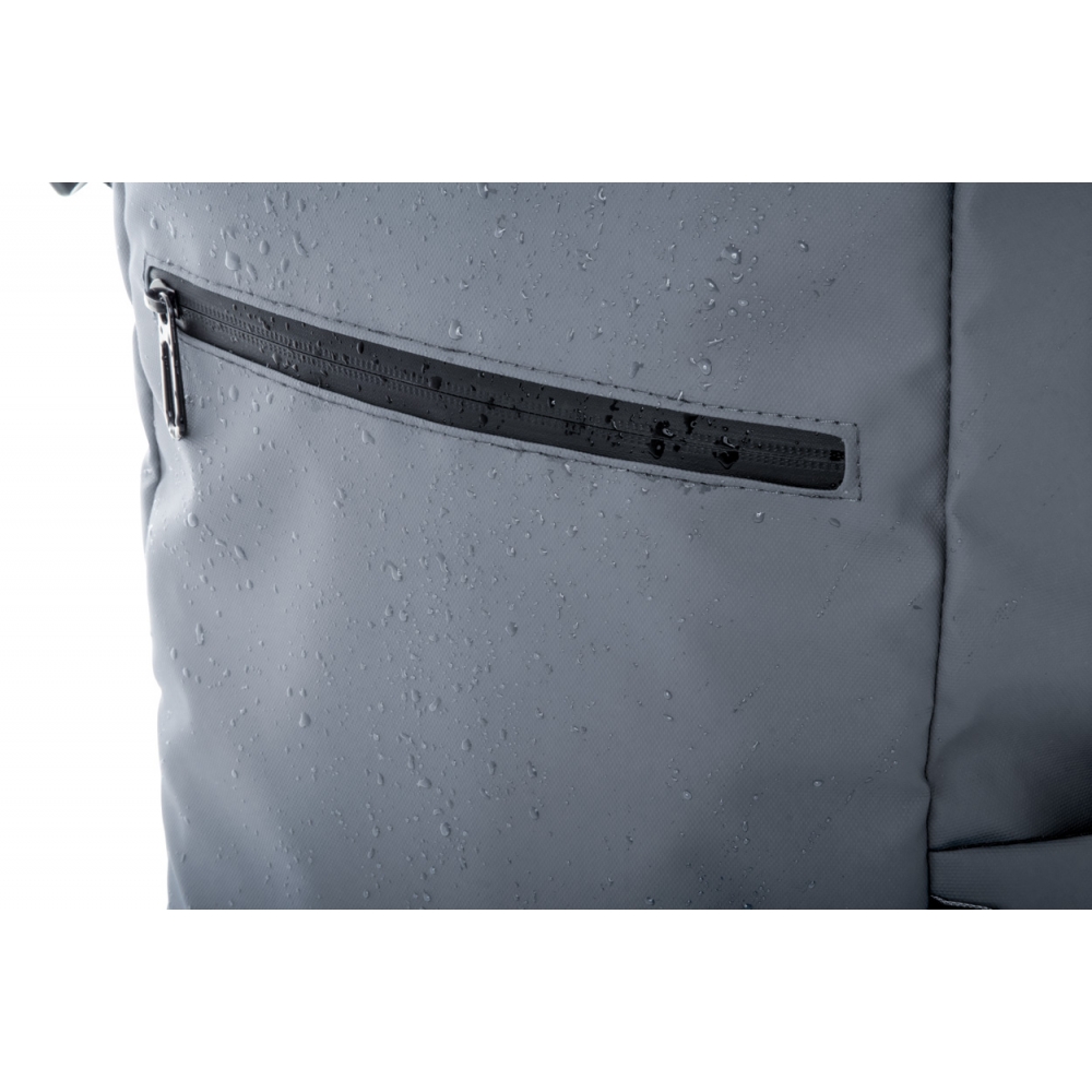 Artikel-Nr: AND808129-80Wasserdichter Rolltop-Rucksack aus RPET mit Schnalle und Klettverschluss, gepolstertem Laptop- (16") und Tabletfach (10"), Reißverschlusstasche vorne, Seitentaschen, gepolstertem Rücken und Schultergurten. Material: PU beschichtetes 600D RPET-Polyester. Mit RPET-Label.