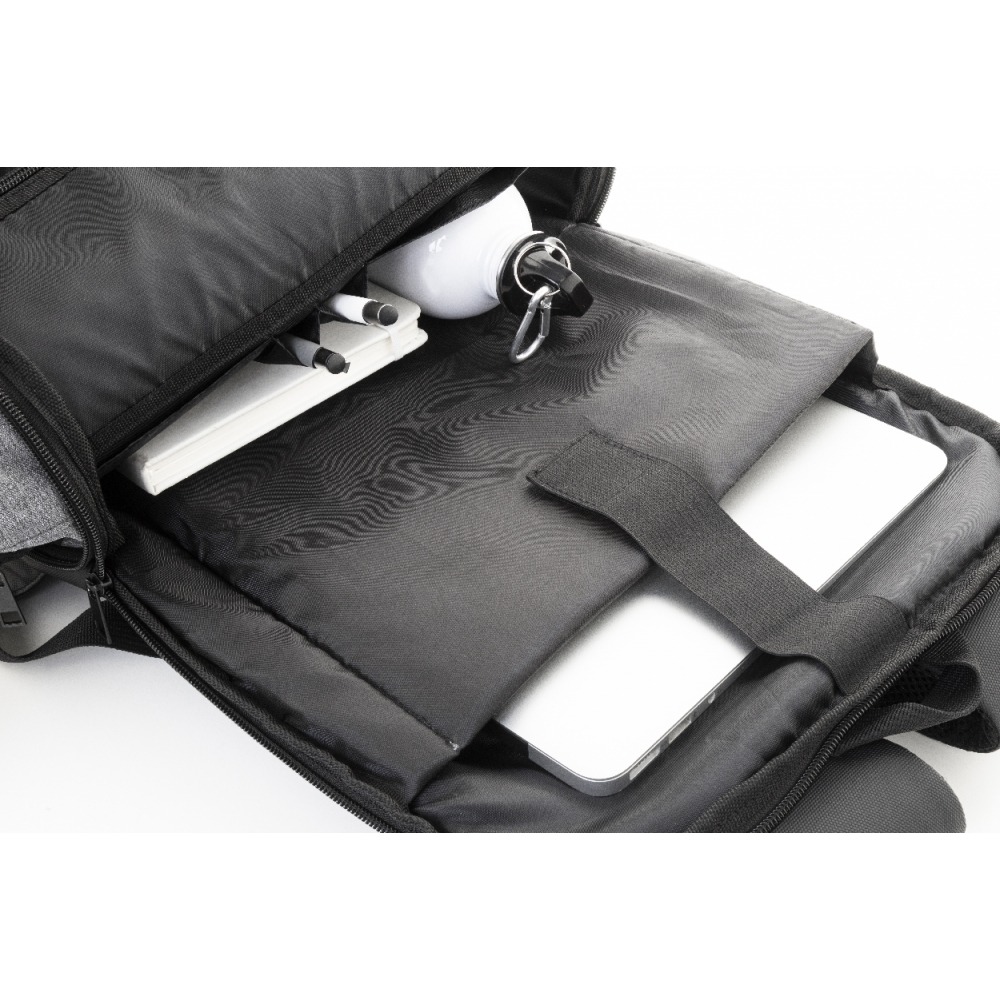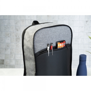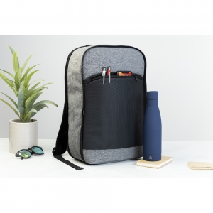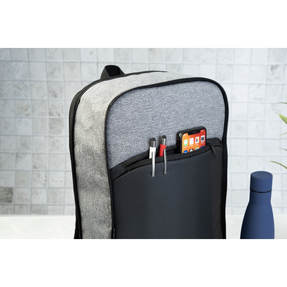 Artikel-Nr: AND800585Erweiterbarer RPET-Rucksack mit Reißverschluss-Hauptfach, Reißverschluss-Vortasche, gepolstertem Laptopfach (15") und PU-beschichteter Vorderseite. Mit Trolley-Gurt, gepolstertem Rücken und Schultergurten. Material: 600D RPET-Polyester. Mit RPET-Label.