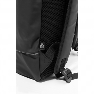 Artikel-Nr: AND800788-10Wasserdichter, weicher Rolltop-Rucksack aus recyceltem Kunstleder mit Hauptfach mit Reißverschluss und Schnallenverschluss, Vordertasche mit wasserdichtem Reißverschluss, gepolstertem Laptopfach (bis 15 Zoll) und Reflektorstreifen. Gepolsterter Rücken und Schultergurte. Mit Label recyceltes PU.