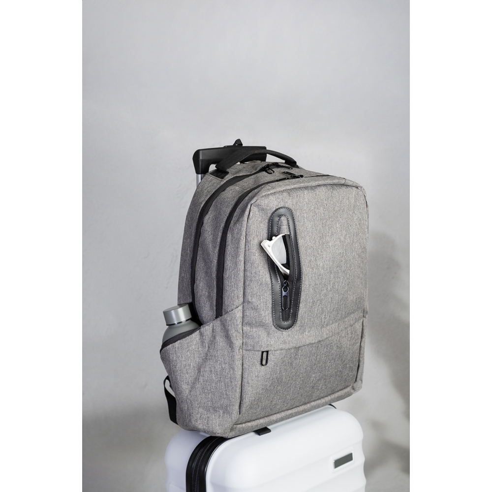 Artikel-Nr: AND800244-80Rucksack aus RPET mit Reißverschluss-Hauptfächern, 2 Reißverschluss-Vordertaschen, Reißverschluss-Seitentaschen und gepolstertem Laptopfach (15"). Mit geposlterten Rücken und Schultergurten, Anti-Diebstahl-Fach und Trolley-Gurt. Material: 300D RPET Polyester. Mit Label RPET.
