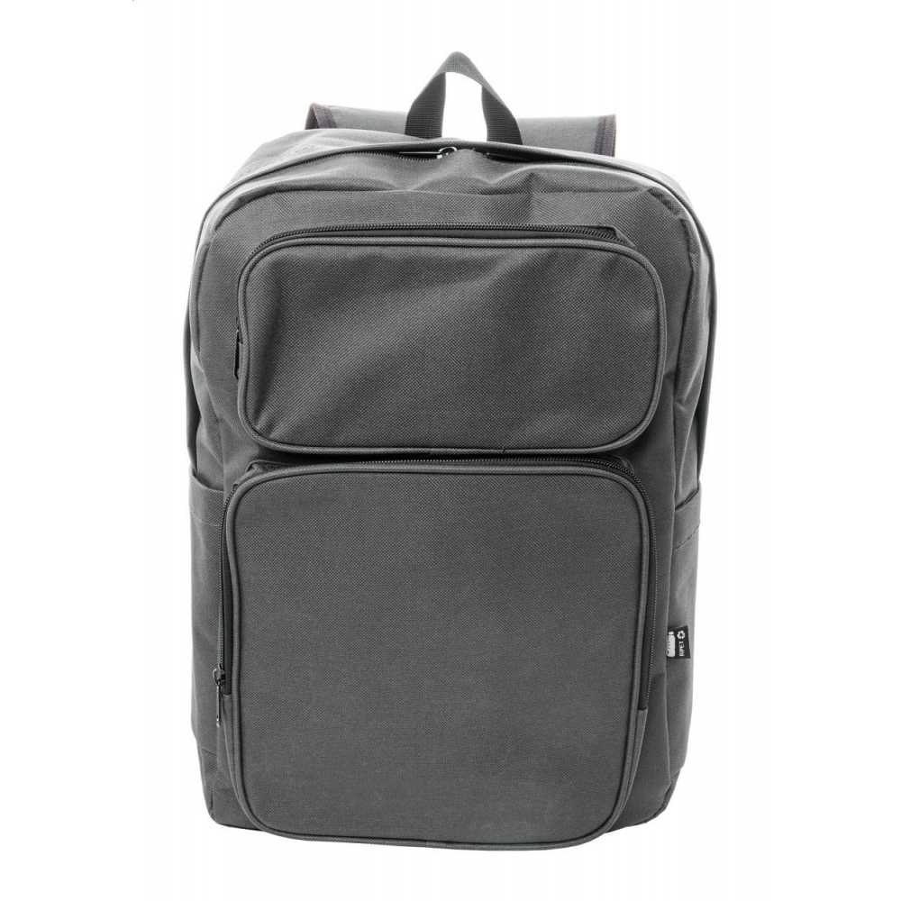 Artikel-Nr: AND808170-77RPET-Rucksack mit Hauptfach mit Reißverschluss, 2 Vordertaschen mit Reißverschluss, Seitentaschen und gepolstertem Fach für Laptop (15") und Tablet (10"). Mit gepolstertem Rücken und Schultergurten. 600D RPET-Polyester, mit unverwechselbarem RPET-Label.