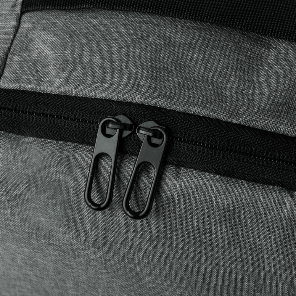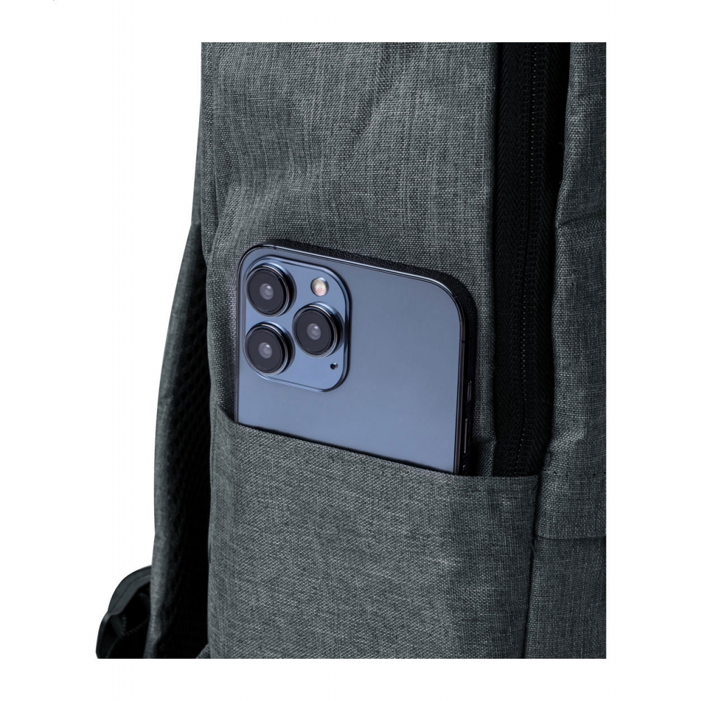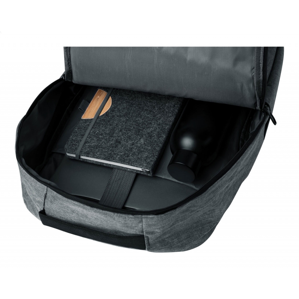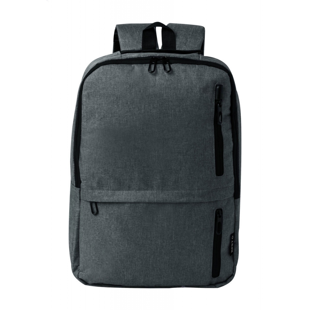 Artikel-Nr: AND733981-77RPET-Rucksack mit Reißverschlussfächern, gepolstertem Laptop- (15") und Tabletfach (10"), gepolstertem Rücken und Schultergurten. Material: 600D RPET-Polyester. Mit RPET-Label.