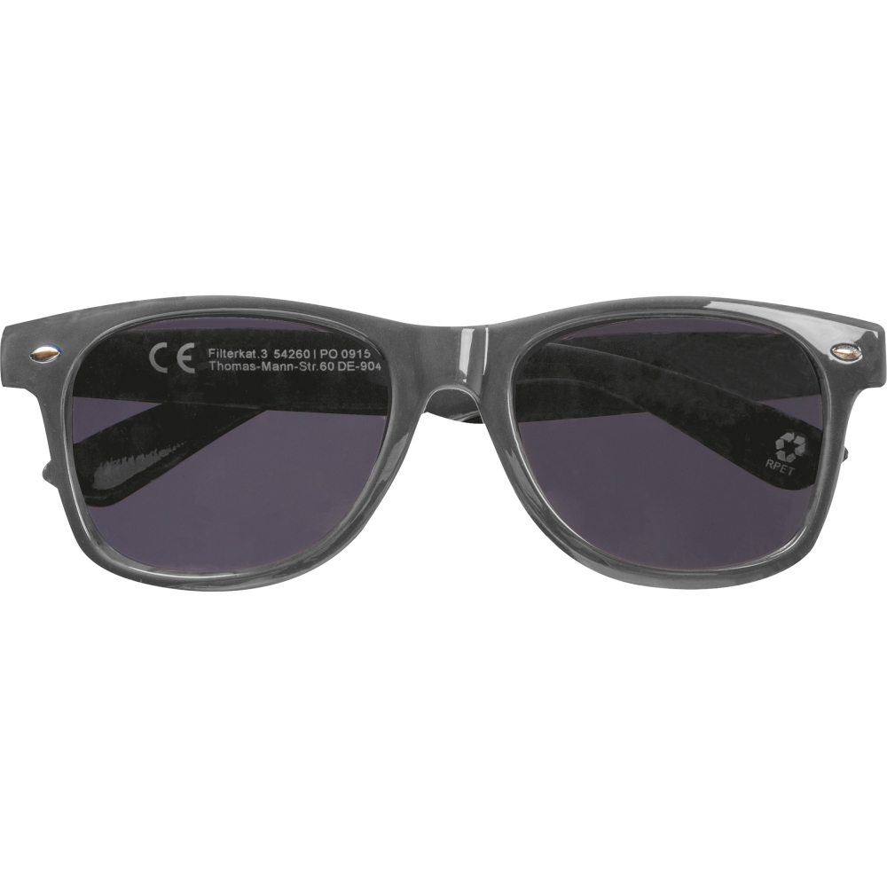 Artikel-Nr: EAG426077Sonnenbrille aus recyceltem PET mit UV 400-Schutz und CE-Filterkategorie 3. Stilvoll und zuverlässig, bietet sicheren Schutz vor schädlichen UV-Strahlen. Ihre Werbung drucken wir auf einen Bügel.