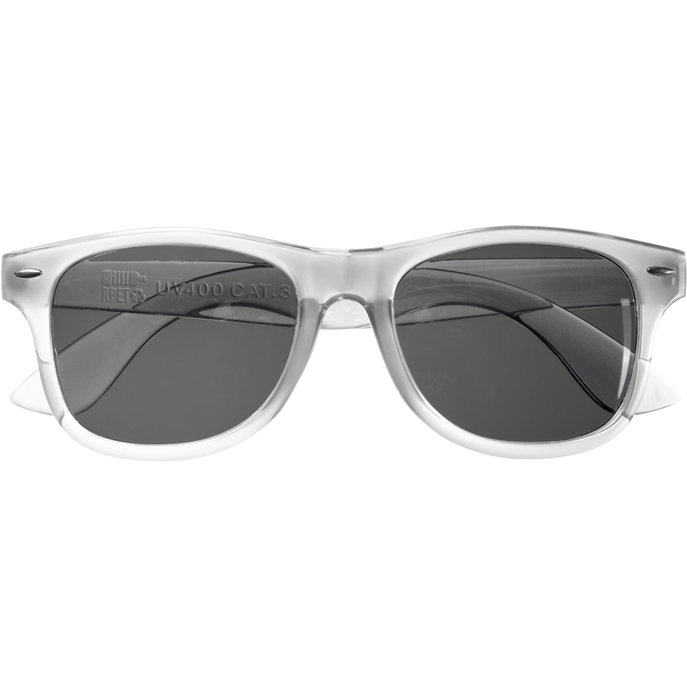 Artikel-Nr: MCM5546166Moderne Sonnenbrille aus recyceltem Kunststoff (RPET) mit transparenten Bügeln und UV400 Schutz (Filterkategorie 3). Ihr Logo drucken wir auf einen der Bügel.