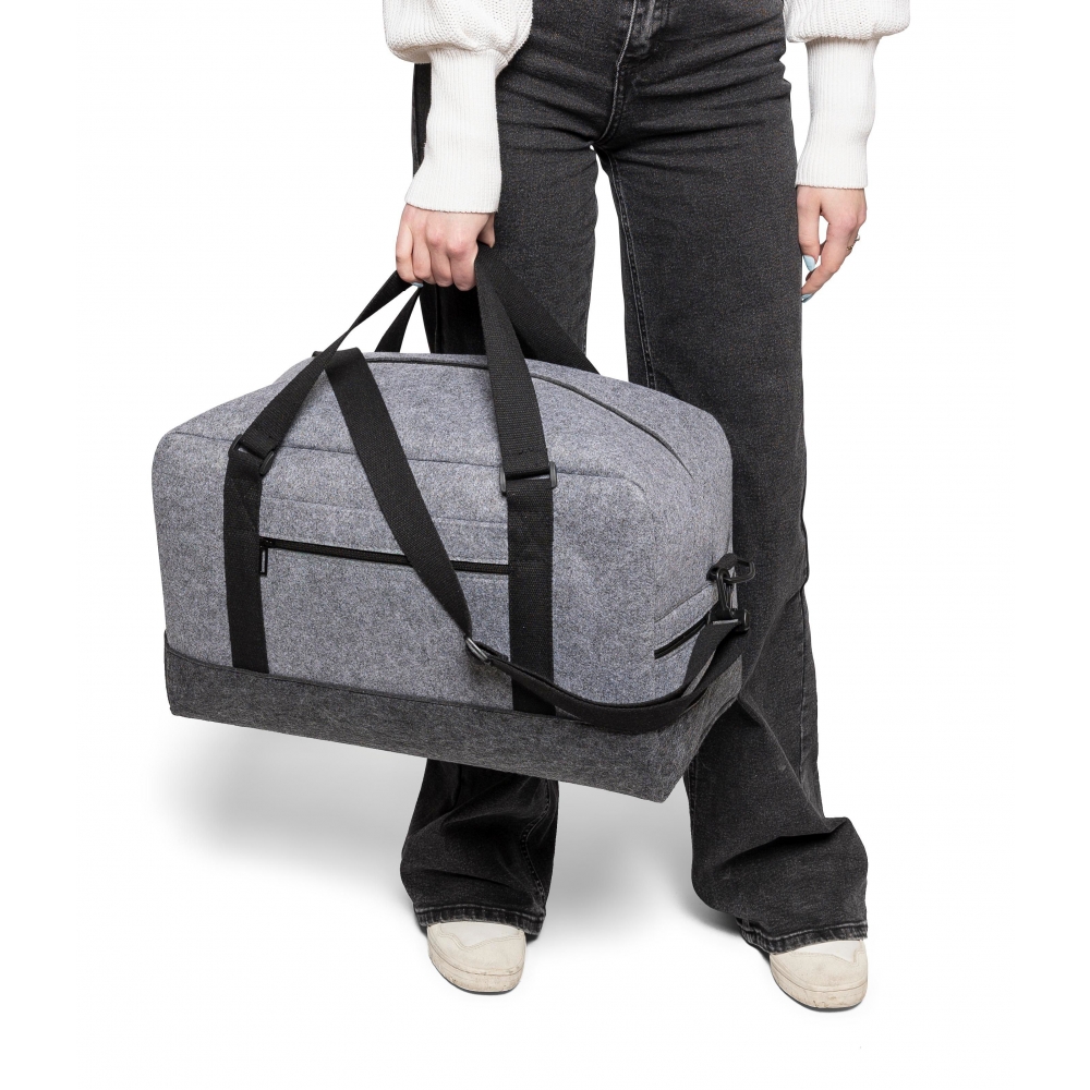 Artikel-Nr: GIV1206869491RPET-Sporttasche aus Filz mit Tragegriffen aus Canvas und einem verstellbaren Schultergurt. Mit einem großen Fach mit Reißverschluss und einem kleinen Fach mit Reißverschluss auf der Vorderseite. Enthält ein rPET-Etikett. Fassungsvermögen: 30 L. Tragfähigkeit: 10 kg.