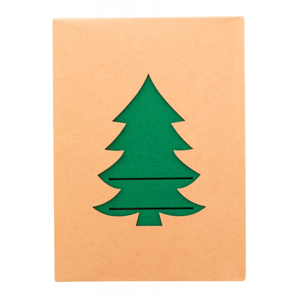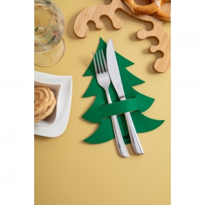 Artikel-Nr: AND845192-074-teiliges Besteckhalter-Set aus RPET-Filz in Weihnachtsbaumform. Verpackt in Kraftpapierbox.