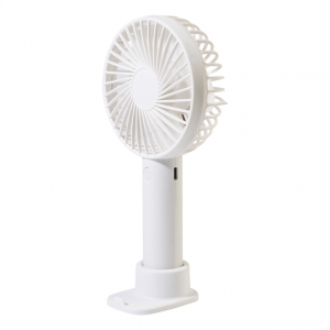 Artikel-Nr: AND864130-01Elektrischer Handventilator aus recyceltem PP mit Handyhalter, eingebautem Akku (800 mAh) und 3-stufigem Geschwindigkeitsregler. Inkl. USB-Ladekabel.