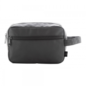 Artikel-Nr: AND808278-10Weiche Kosmetiktasche aus recyceltem Kunstleder mit zwei Reißverschlußfächern, Tragegriff. Mit Label recyceltes Kunstleder.