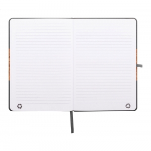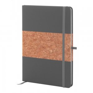 Artikel-Nr: AND800780-77A5 Notizbuch mit Umschlag aus natürlichem Kork und Kunstleder mit farblich abgestimmten Lesezeichen, Gummiband und Stifteschlaufe sowie 80 linierten Seiten aus Recyclingpapier.
