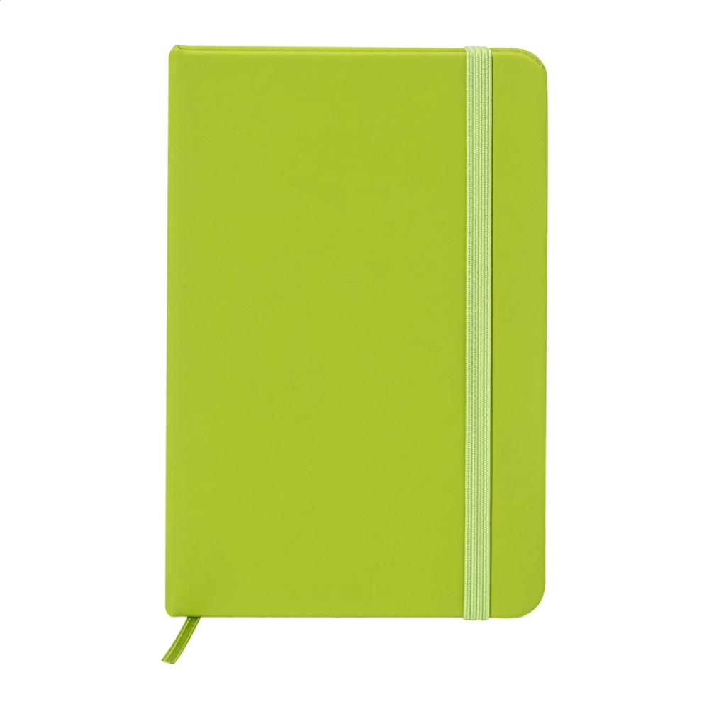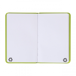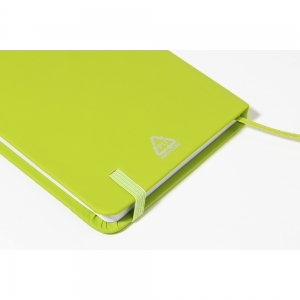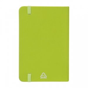 Artikel-Nr: AND800766-71Notizbuch mit recyceltem PU-Lederbezug und 100 blanko Blättern aus Recyclingpapier. Mit farblich passendem Lesezeichen und Gummiband. A6-Größe.