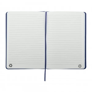 Artikel-Nr: AND800741-06ANotizbuch mit recyceltem PU-Lederbezug und 100 linierten Blättern aus Recyclingpapier. Mit farblich passendem Lesezeichen und Gummiband. A5-Größe.