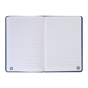 Artikel-Nr: AND800741-06Notizbuch mit recyceltem PU-Lederbezug und 100 linierten Blättern aus Recyclingpapier. Mit farblich passendem Lesezeichen und Gummiband. A5-Größe.