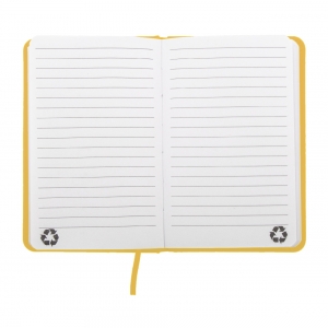 Artikel-Nr: AND800742-02Notizbuch mit recyceltem PU-Lederbezug und 100 linierten Blättern aus Recyclingpapier. Mit farblich passendem Lesezeichen und Gummiband. A6-Größe.