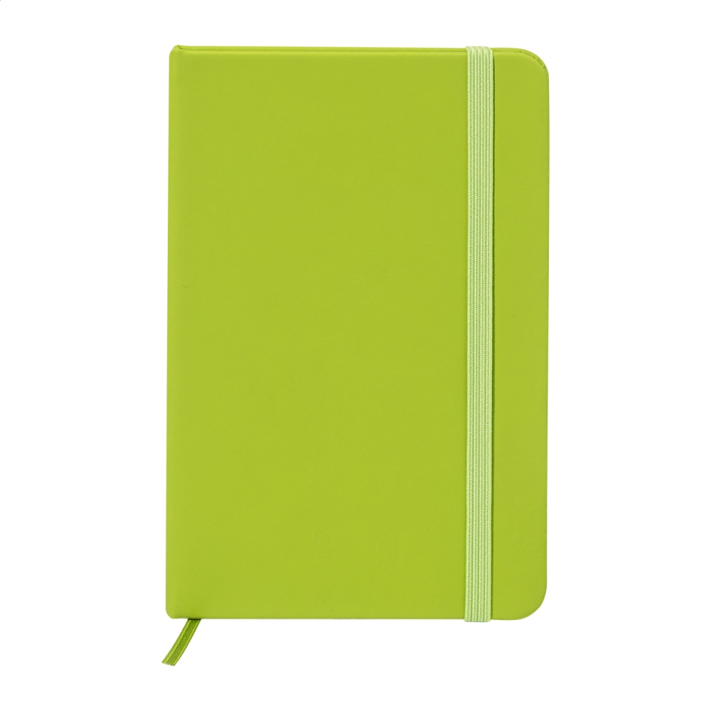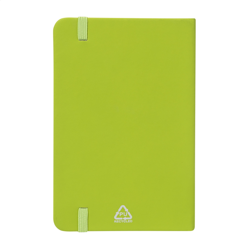 Artikel-Nr: AND800742-71Notizbuch mit recyceltem PU-Lederbezug und 100 linierten Blättern aus Recyclingpapier. Mit farblich passendem Lesezeichen und Gummiband. A6-Größe.