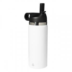 Artikel-Nr: AND800078-01Doppelwandige Isolierflasche aus recyceltem Edelstahl mit klappbarem PP-Trinkverschluss, Tragegriff und integriertem Strohhalm. Füllmenge: 500 ml.