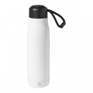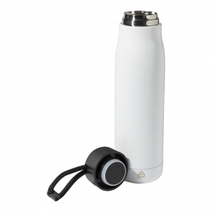 Artikel-Nr: AND800274-01Doppelwandige, vakuumisolierte Trinkflasche aus recyceltem Edelstahl mit Deckel aus PP mit Kordeltrageschleife. Füllmenge: 500 ml.