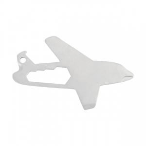 Artikel-Nr: AND800797Multitool in Flugzeugform aus recyceltem Edelstahl mit Schlüsselring, Flaschenöffner, Lineal, Kreuz- und Schlitzschraubendrehern, Sechskantschlüsseln und Drahtschneider.