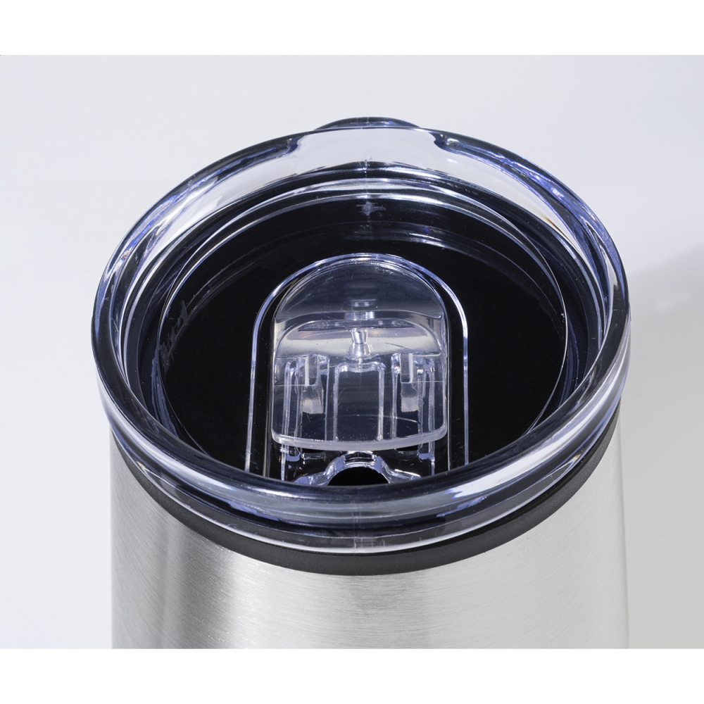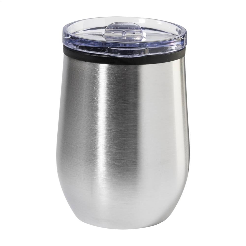 Artikel-Nr: AND800273-21Doppelwandiger Thermobecher aus Edelstahl mit Innenseite aus PP- und Trinkdeckel aus PS-Kunststoff. Füllmenge: 350 ml.